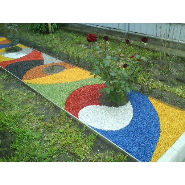 Декоративный или крашенный щебень – новое направление в ландшафтном дизайне и оформлении сада, дачи, и не только. Множество цветов щебня дает обширный полет фантазии декоратора или садовода. Так же дворик, украшенный декоративным щебнем, создаст неповторимый пейзаж в вашем дворе, и покажет Вашу уникальность. Не дороговизна крашенного щебня позволит Вам охватить большие территории.