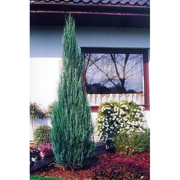 Можжевельник скайрокет – это удивительной красоты вечнозеленое хвойное дерево. Прекрасно будет смотреться в вашем саду как отдельно стоящее дерево, так и живая изгородь которая из можжевельника скайрокет замечательная и не требует особого ухода. Можжевельник скайрокет для дома и сада имеет колоновидную форму и поэтому его в шутку называют небесной ракетой. В высоту взрослое дерево достигает до восьми метров. Он морозостоек и температура -30 градусов его не напугает, и непосредственно благодаря этому на него большой спрос в наших широтах. На прямых, растущих вертикально вверх побегах, находятся голубовато-зеленые чешуйчатые хвостики которые являются главным украшением. У нас вы можете купить Можжевельник скайрокет Днепропетровск